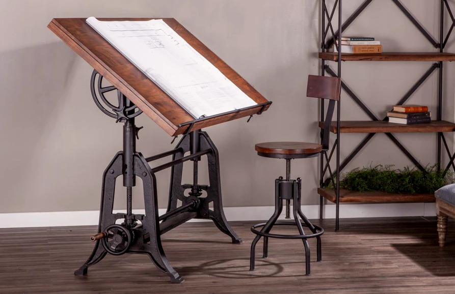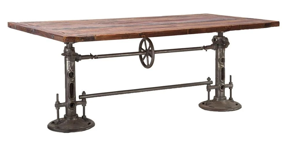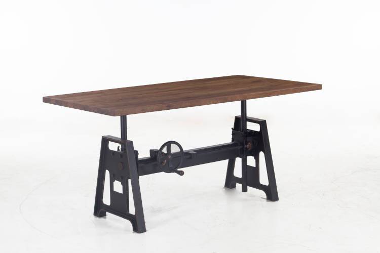 - Traditional cast iron crank tables (the first type of height adjustable table invented)